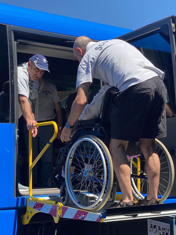 Ya a mediodía recibimos los autobuses de enfermos y peregrinos cuya descarga se realizó sin contratiempo alguno.