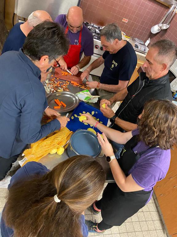No podía faltar una de las noches en el campamento la cena de camaradería con nuestros amigos scouts italianos donde nos repartimos obsequios y preparamos menu conjunto.